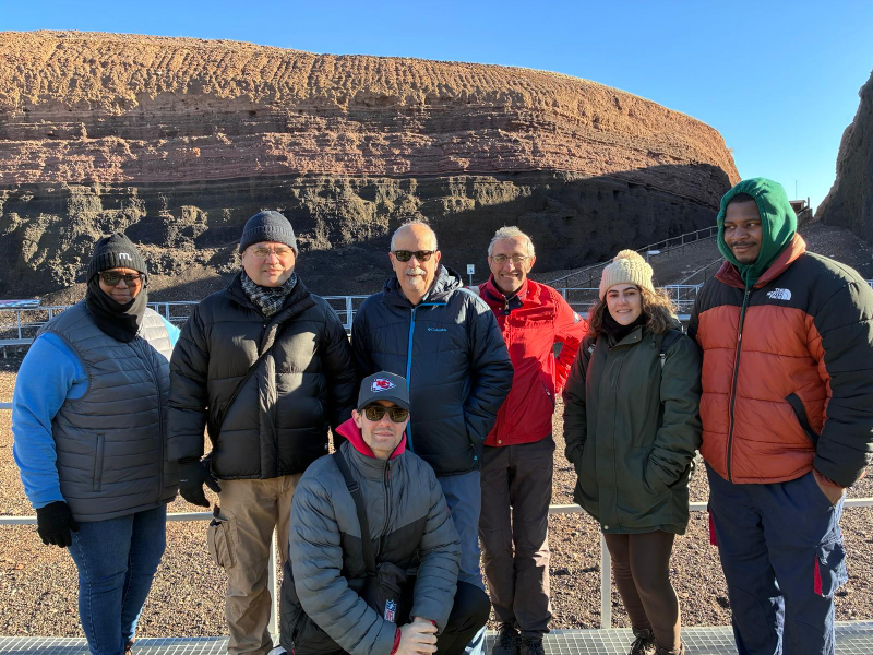 La visita incluyó un recorrido habilitado para turistas, en el que se pueden observar estos materiales, producto de una erupción de tipo Estromboliano, muy parecida a la del Volcán de Tajogaite, en la Isla de La Palma, en el año 2021.