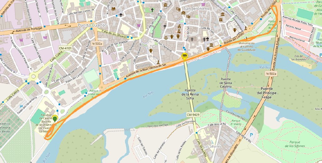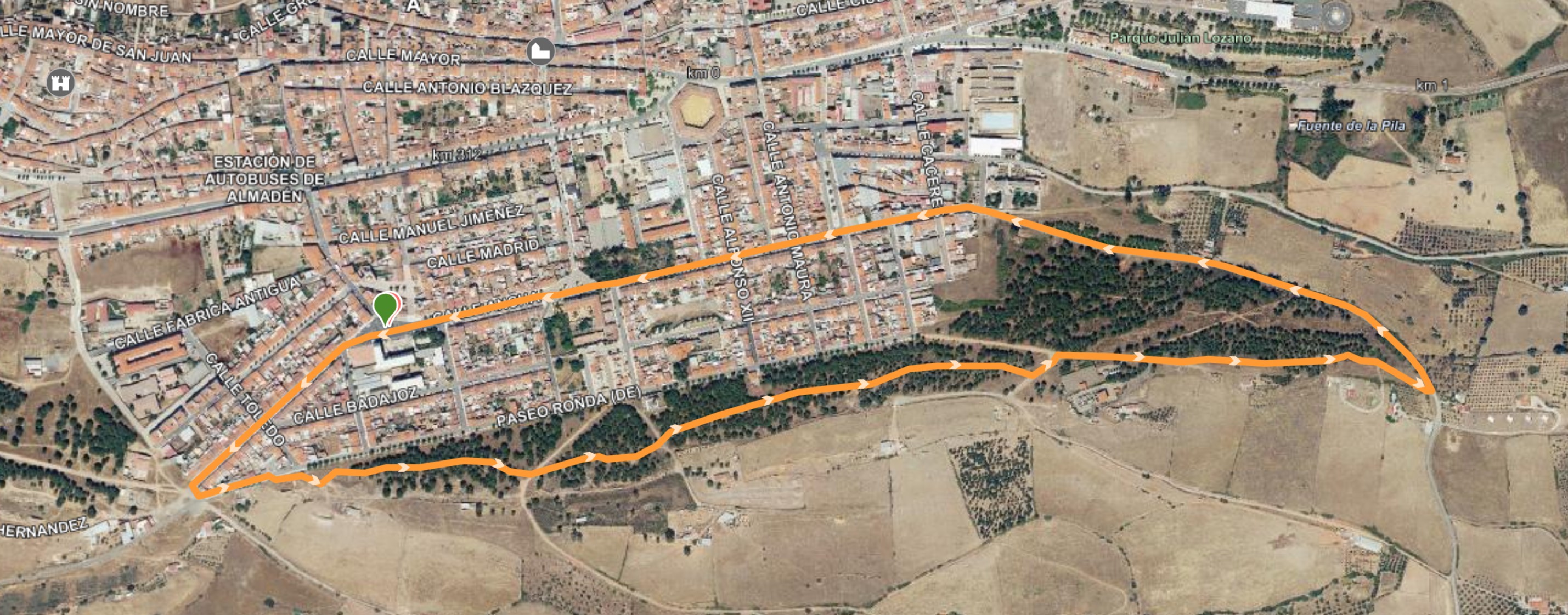 Ruta circular de 1,5 km en el campus de Ciudad Real pasando por: