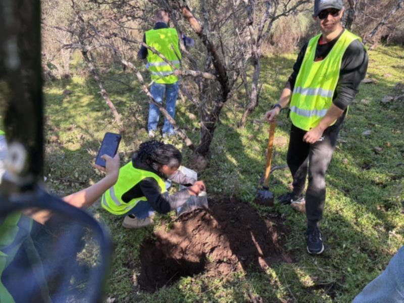 El Equipo A tomando muestra de suelo y de hojas de encina.