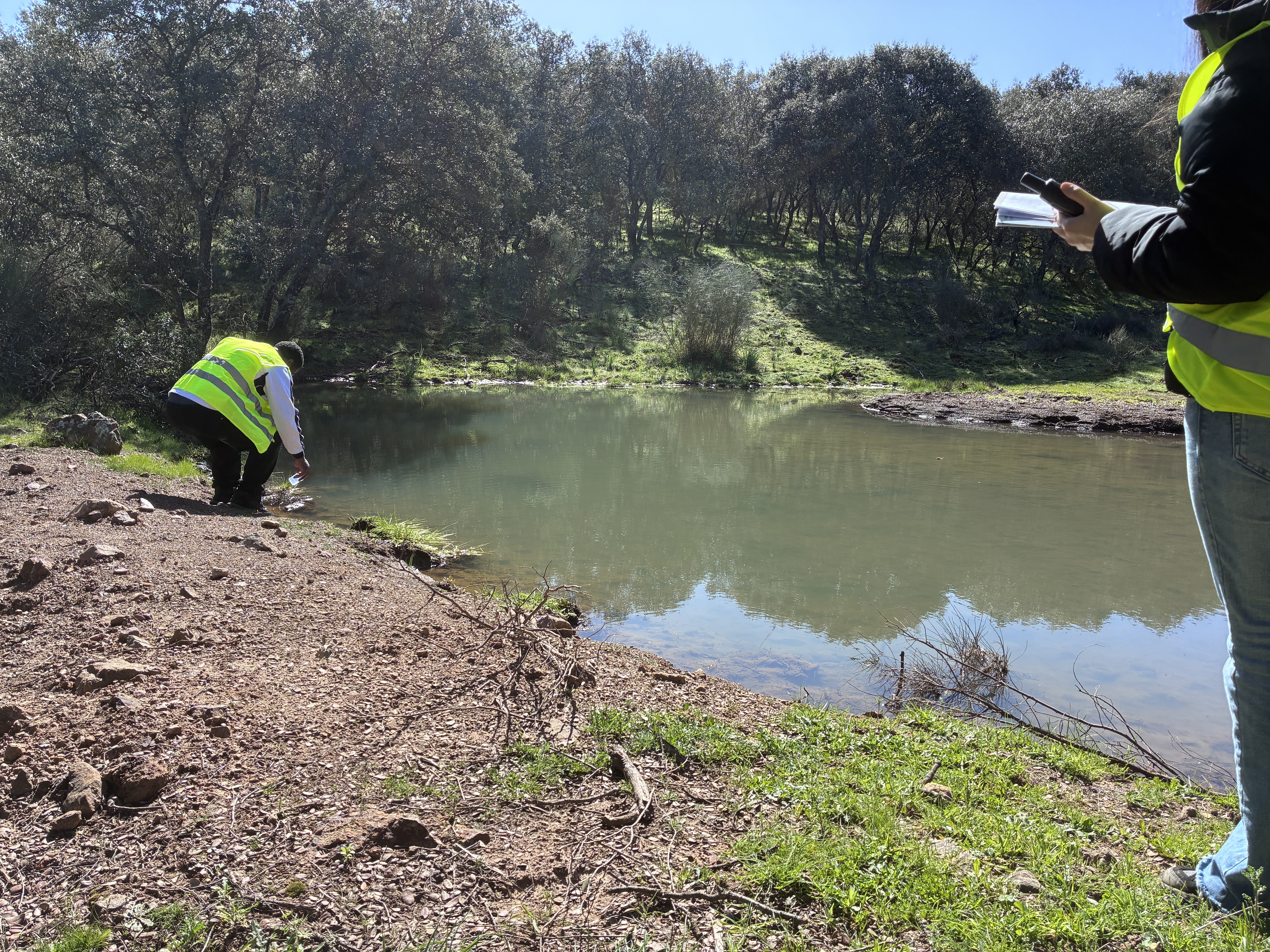 Tomando muestra de agua embalsada.