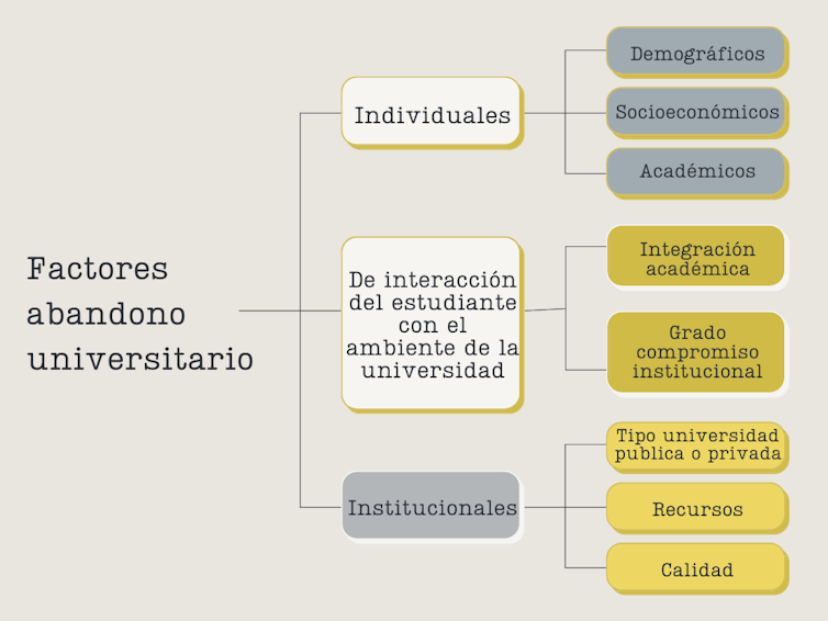 Son numerosos los estudios que muestran cuáles son los factores de abandono universitario. Estos suelen clasificarse en tres grandes bloques: