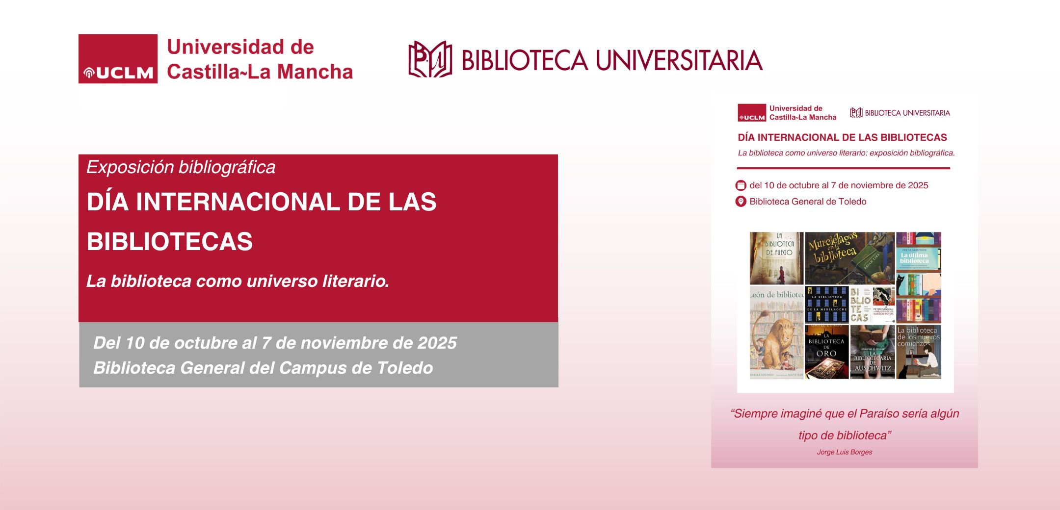 Exposición bibliográfica: Día Internacional de las Bibliotecas. La biblioteca como universo literario