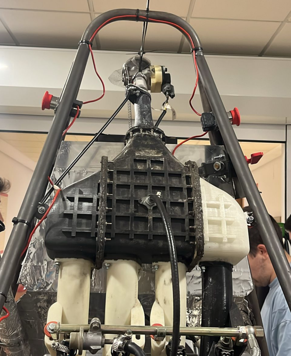 Actualmente competimos en la categoría de combustión interna, empleando un motor proveniente de una Honda CBR600 F4 del año 2000, al que realizamos diversas mejoras orientadas a optimizar su rendimiento en circuito y cumplir la normativa de la competición.